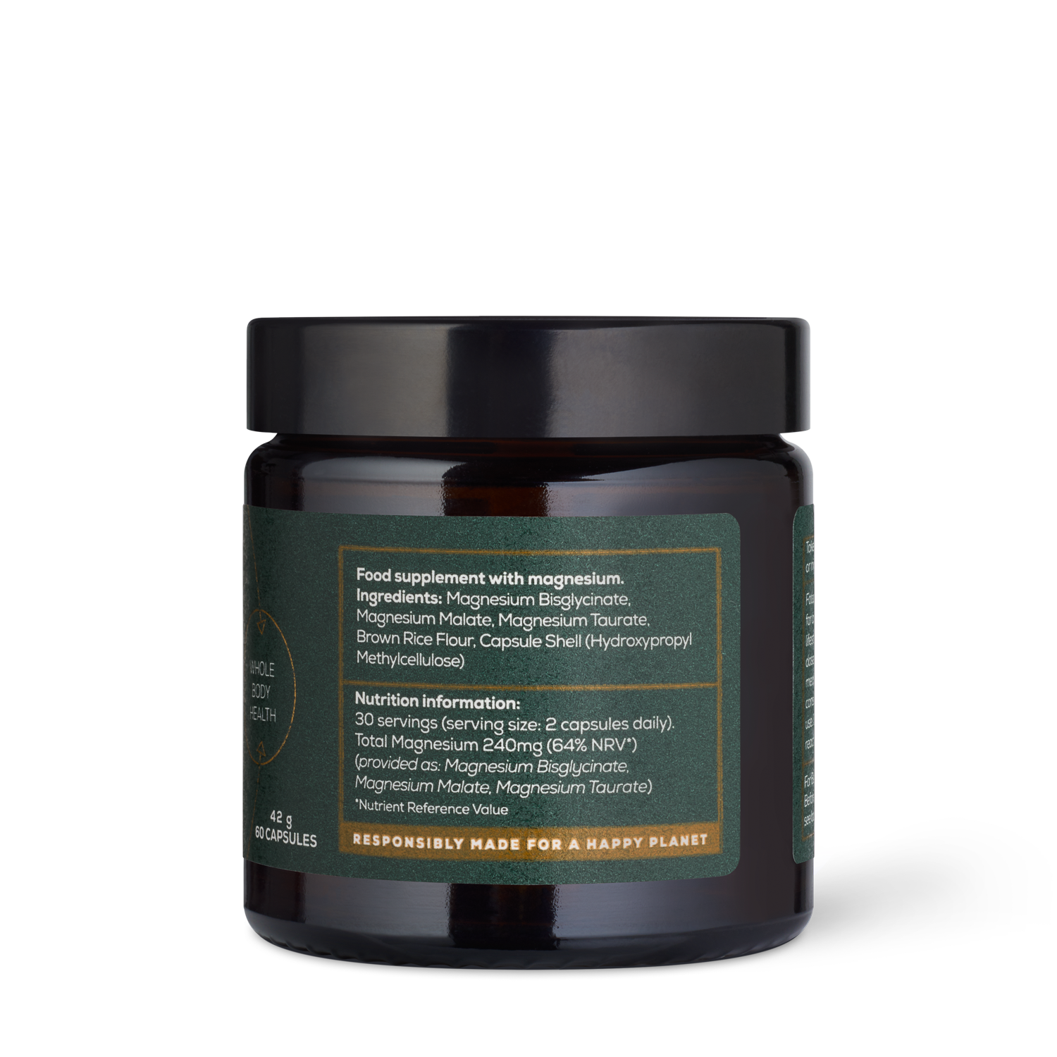 Magnesium Bisglycinate, Magnesium Malate, Magnesium Taurate, Brown Rice Flour, Capsule Shell (Hydroxypropyl Methylcellulose)