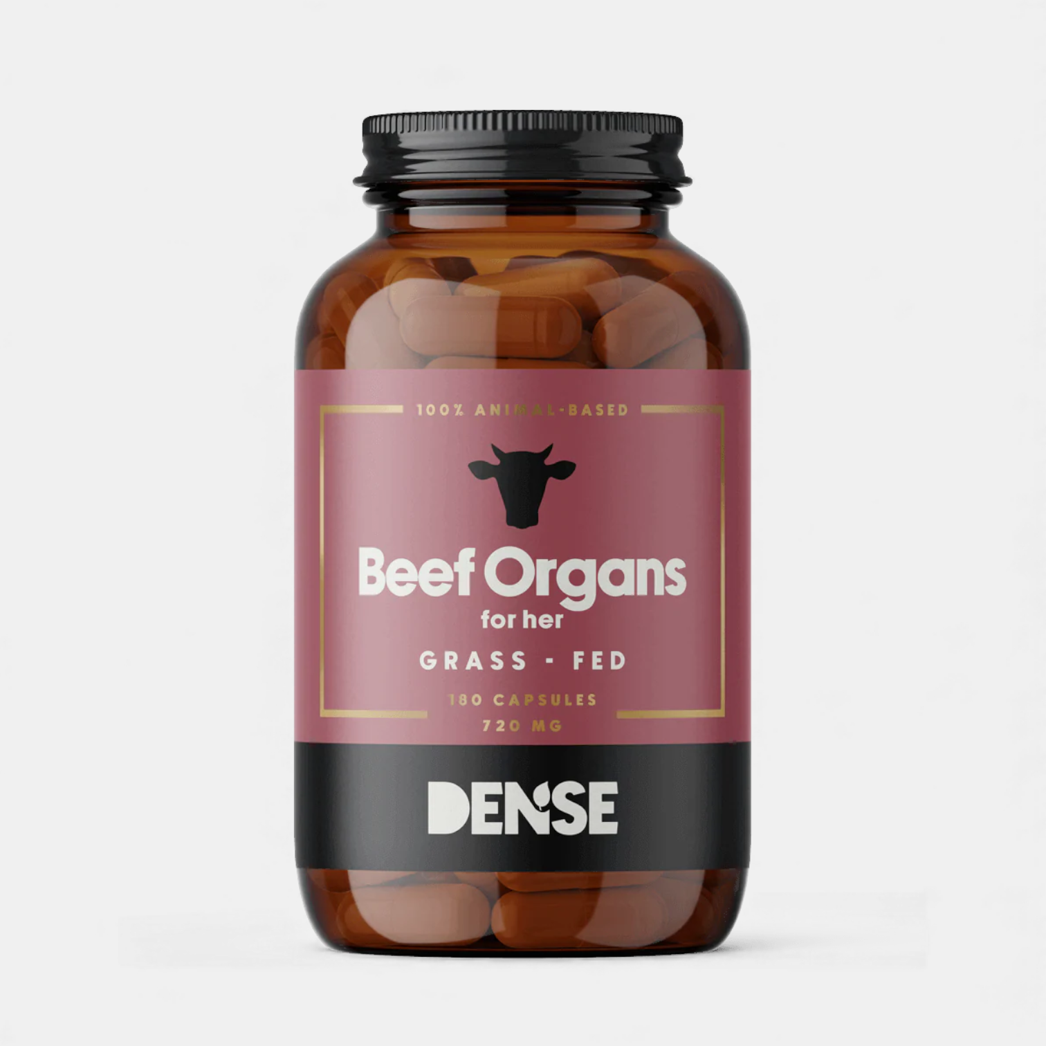 Dense Nutrition's Beef Organs for Her is a capsule-based organ mix, designed for women who want to incorporate organ meats into their food-first routine.